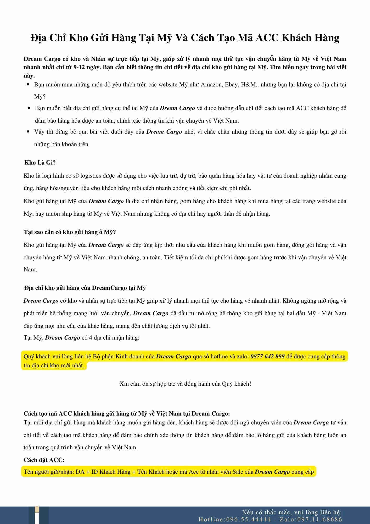 Địa chỉ kho gửi hàng tại Mỹ và cách tạo mã ACC khách hàng